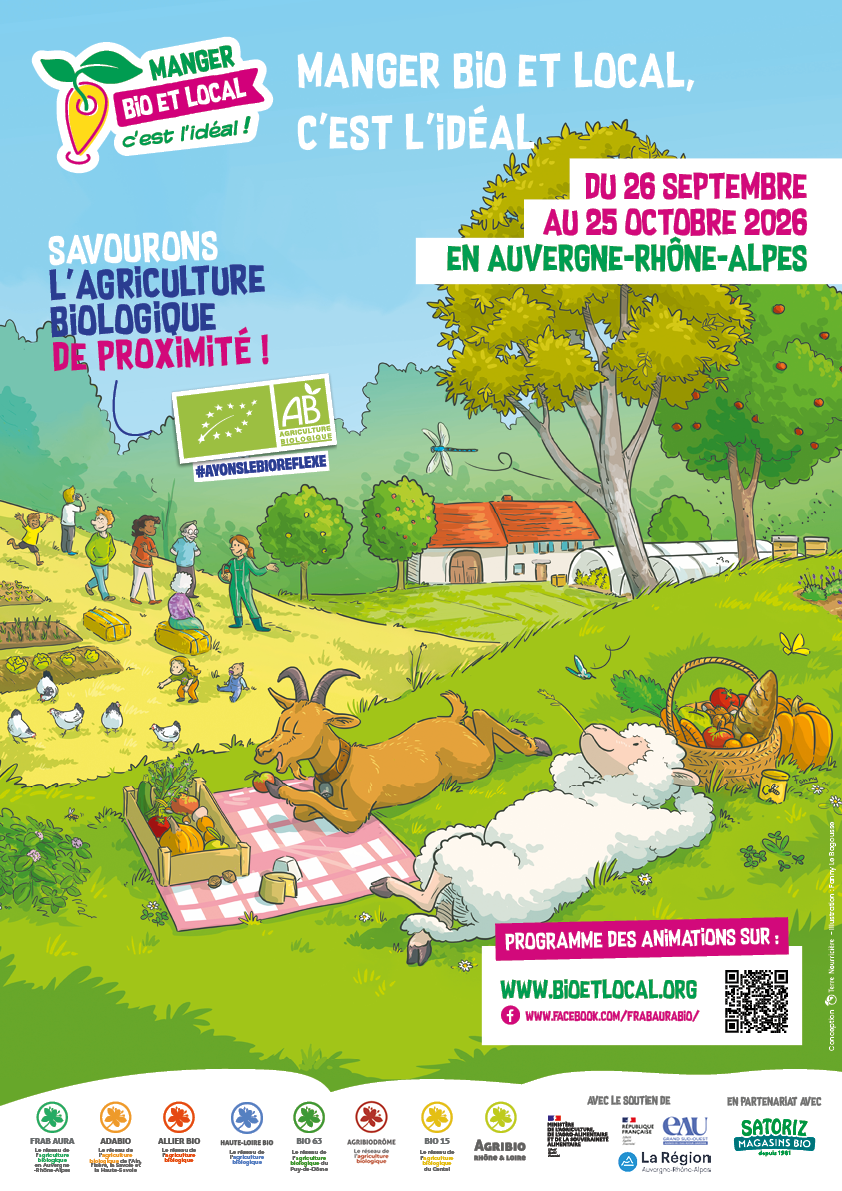 Du 26 septembre au 25 octobre 2026, le réseau GAB-FRAB AURA organise une nouvelle édition de Manger Bio et Local, c’est l’idéal, un temps fort régional dédié à la promotion d’une alimentation saine et durable.