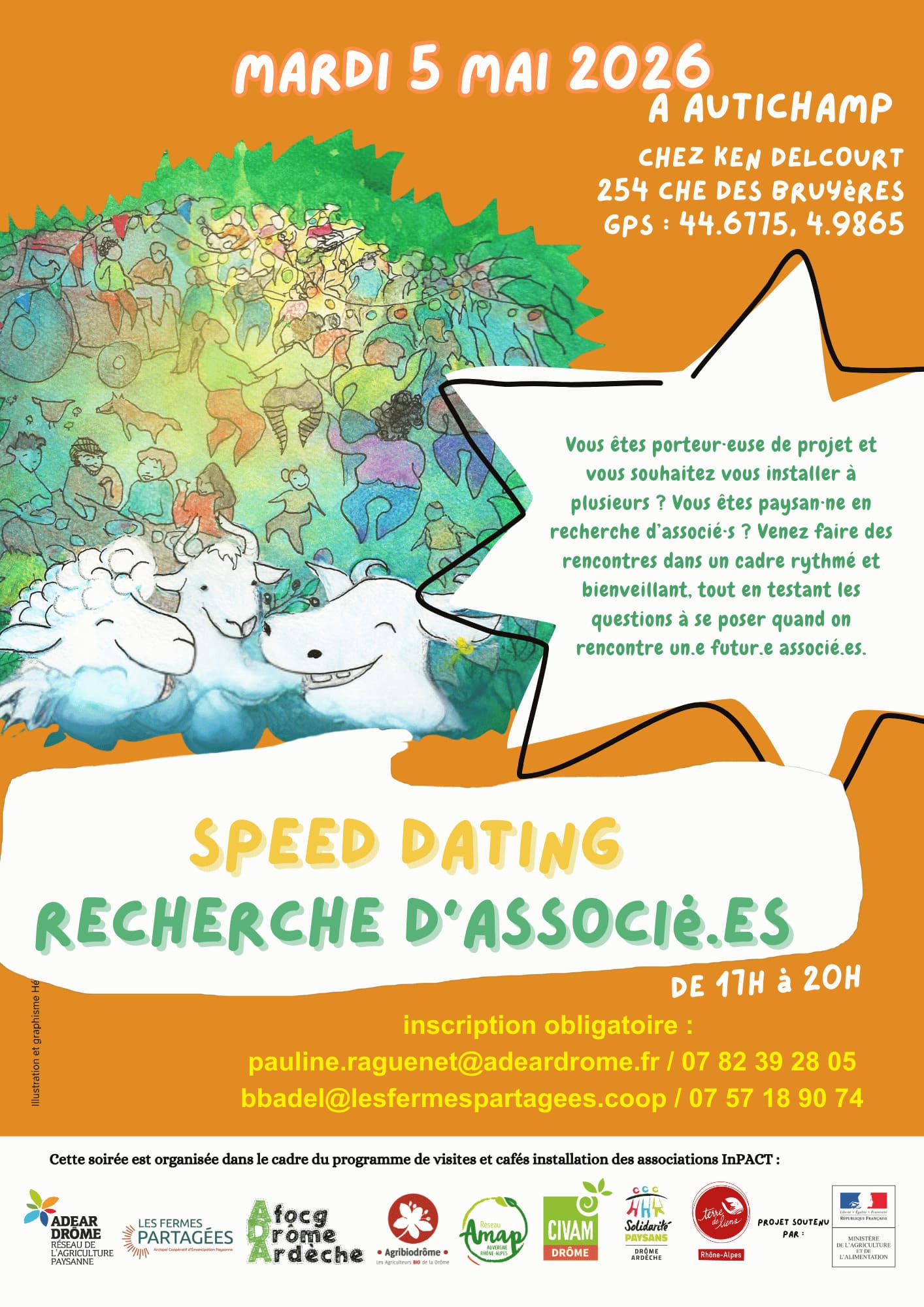 L’Adear et Fermes Partagées organisent le mardi 5 mai à Autichamp un speed-dating « recherche d’associé.es ».